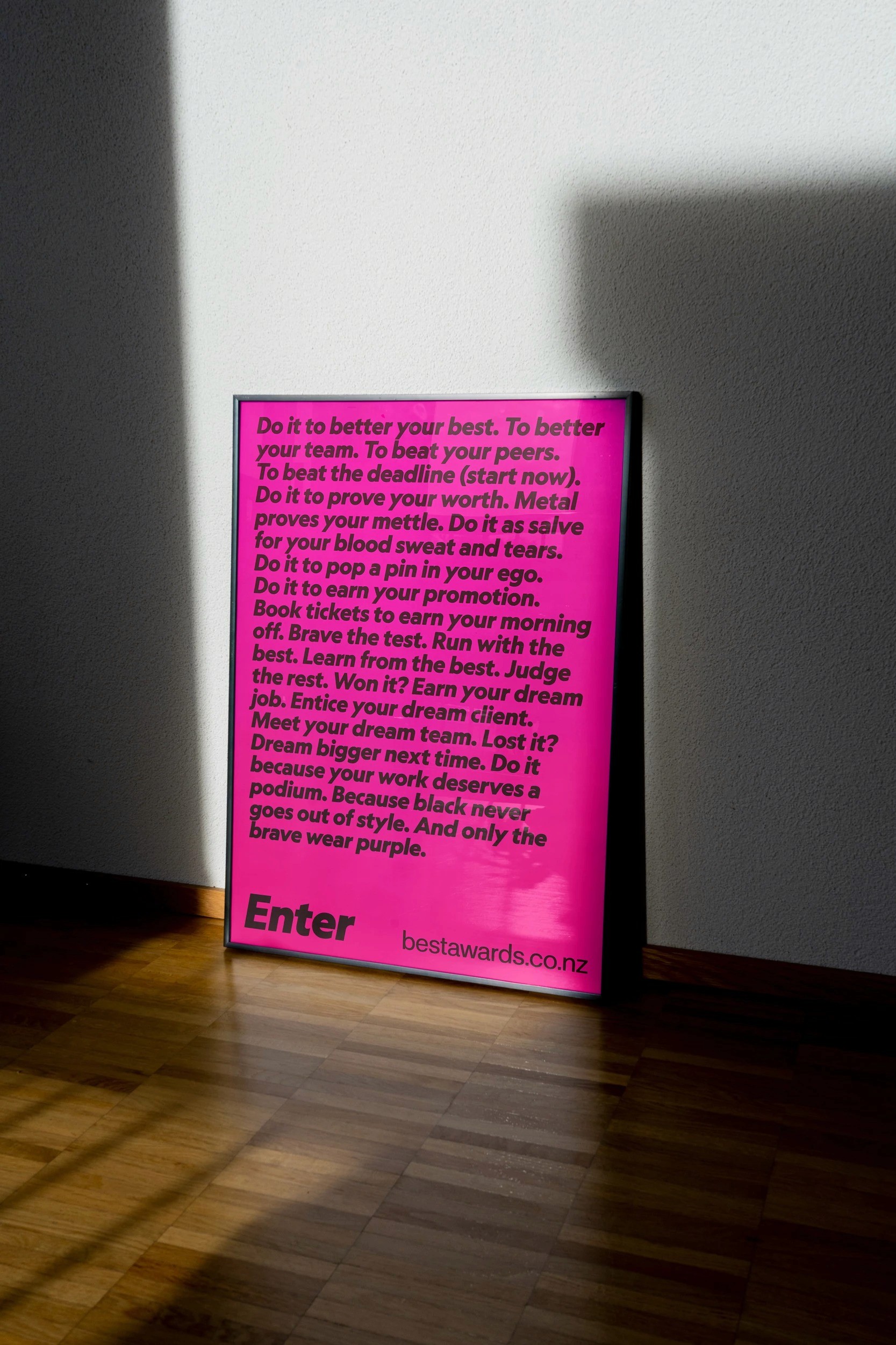 Our campaign design for the New Zealand Best Design Awards was a provocation, a call to arms to be the Best; To better your best, to better your team, because metal proves your mettle.