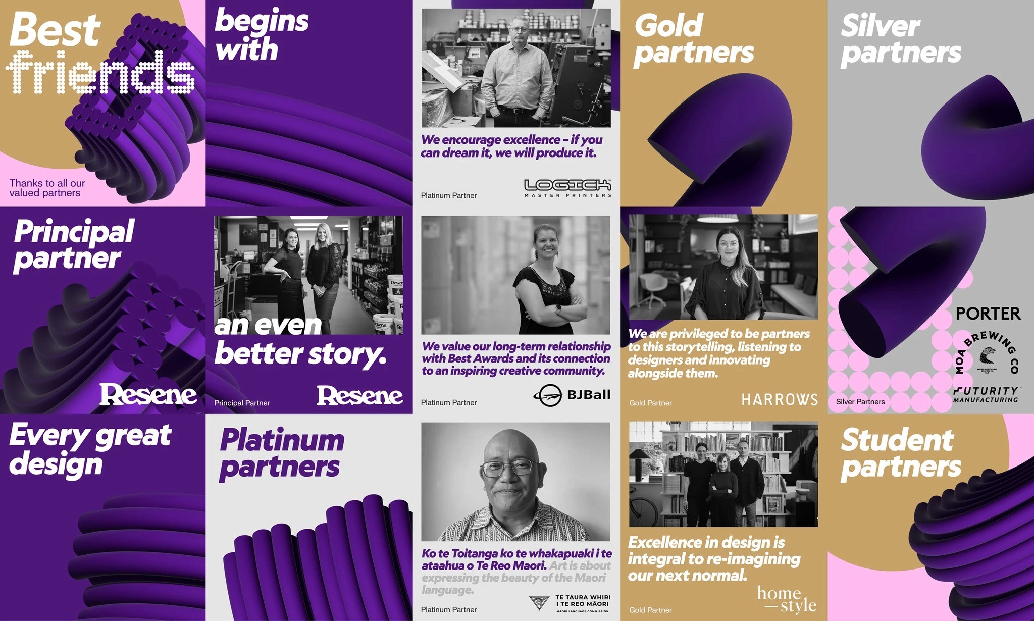 2022 was the first physical awards ceremony to be held post covid, there was huge anticipation and built up energy to capture. This gave us the perfect opportunity to challenge the often minimalistic and restrained aesthetics seen in previous years’ campaigns, it was time for celebration. Our campaign became a visual expression of the energy and excitement that the Best Design Awards creates across every discipline of design and creative industry within New Zealand. Over a period of 6 months our campaign needed to keep a highly critical audience engaged and sustained; our aesthetically expansive campaign meant things never got dull through diverse unashamedly loud and proud visual language, juxtaposed futuristic glitch with retro kitsch and brash colour clash.