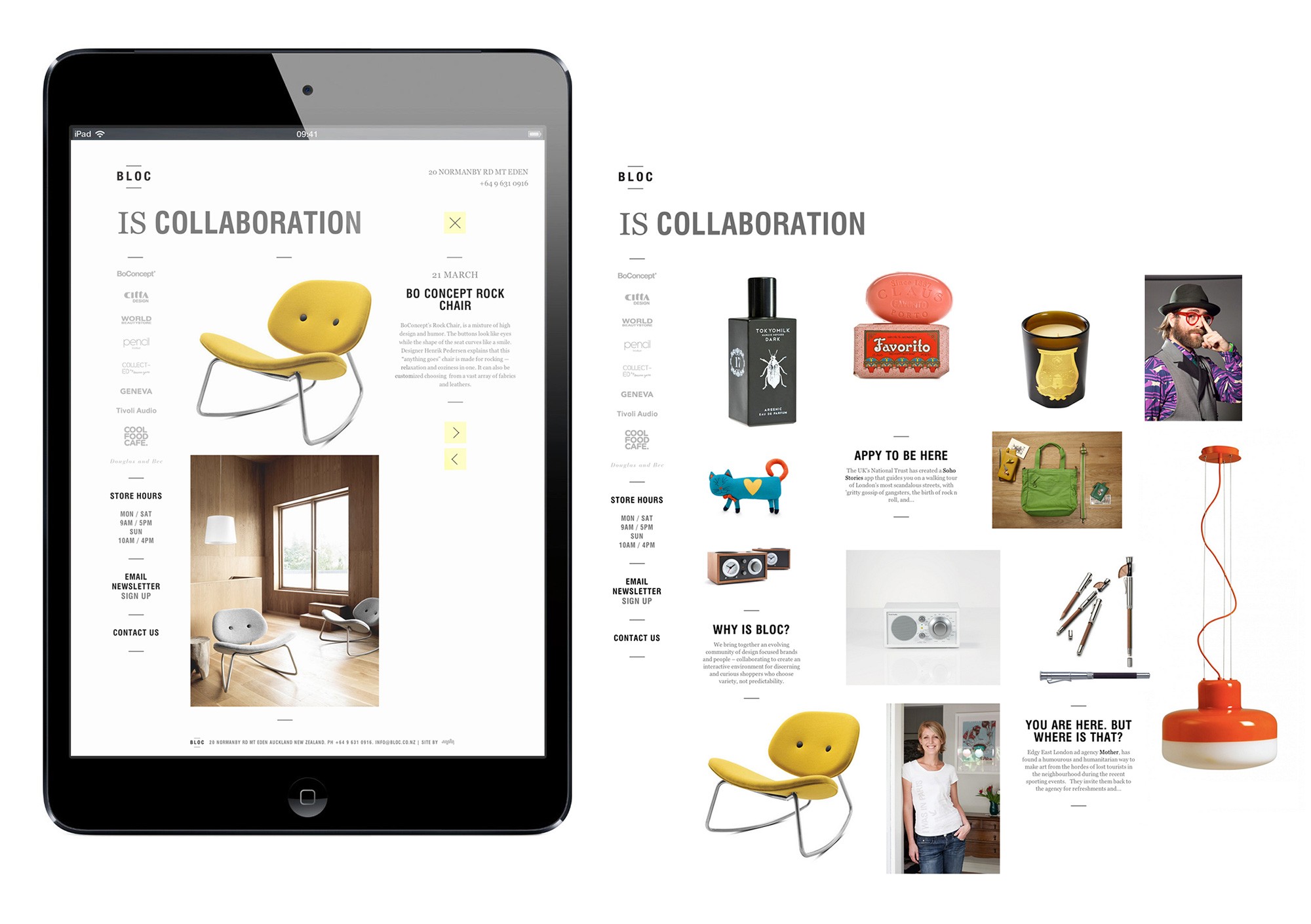 Bloc, located at 20 Normanby Rd, Auckland, is a distinctive destination uniting a curated community of design-focused brands, including BoConcept, Citta Design, Collected, Douglas & Bec, Father Rabbit, and World. It offers an interactive environment for curious shoppers who value variety over predictability. At its core, Bloc celebrates great design and fosters a community of people passionate about design in all its forms. Unlike global design capitals, Auckland lacks a central hub where design enthusiasts can gather, explore, and purchase from multiple like-minded brands. Bloc addresses this gap, creating New Zealand’s first dedicated design-centred destination with complementary tenancies. The Bloc identity needed strength to stand alone while harmonising with the eclectic brands it houses. Its simple, unpretentious design avoids over-decoration, allowing meaning and personality to emerge through supporting statements — enhancing the brand’s character and reinforcing its position as a hub for design discovery.