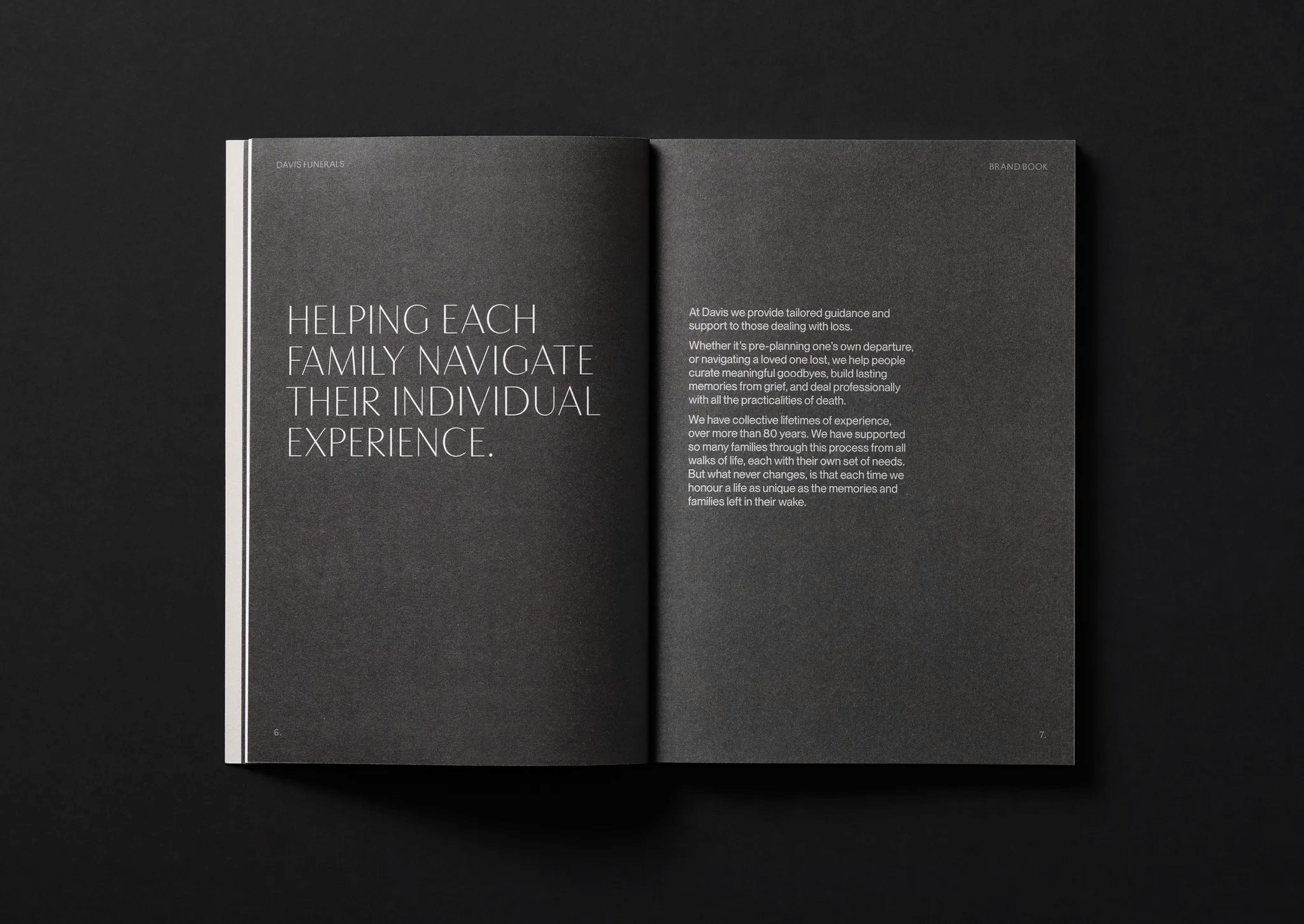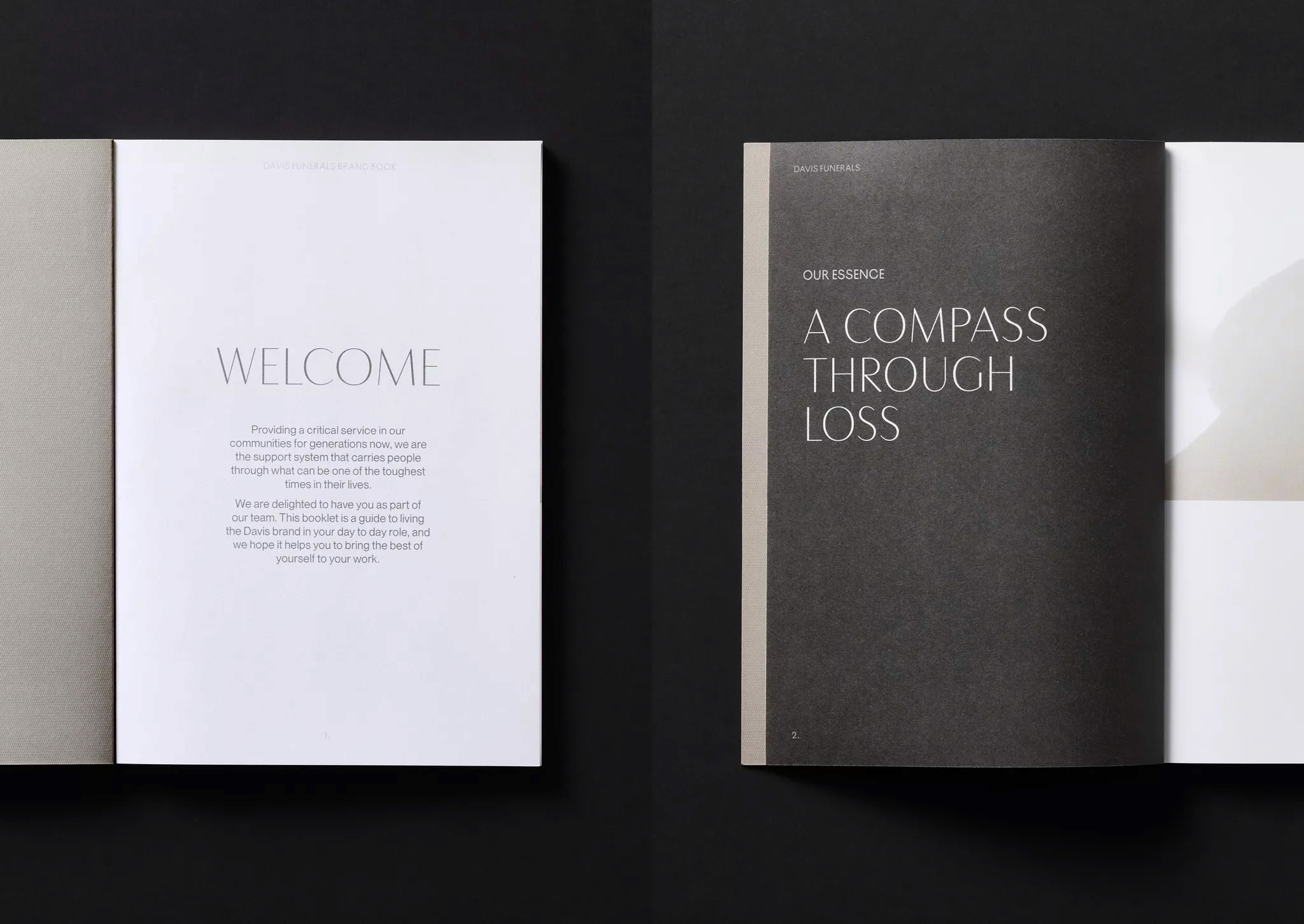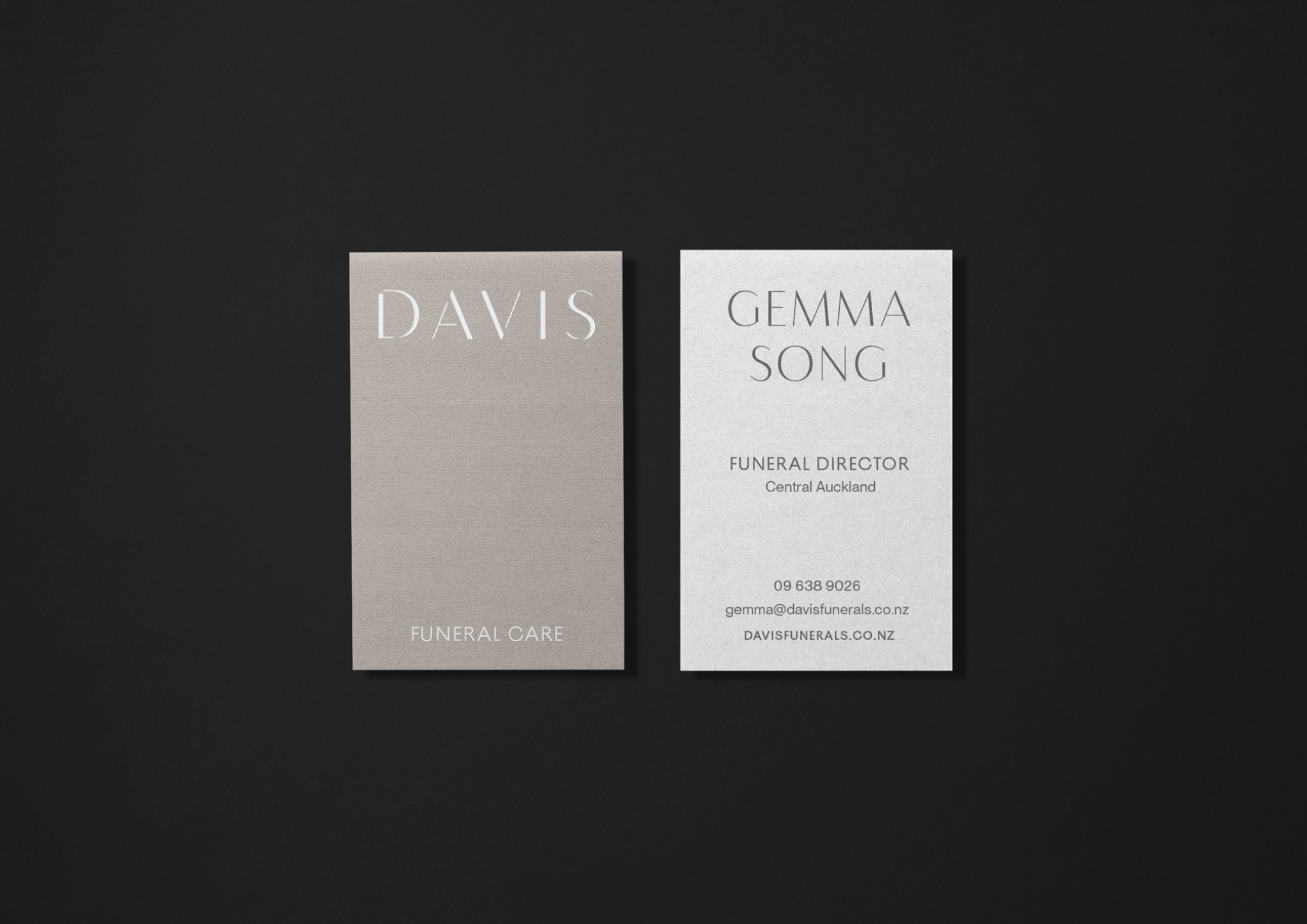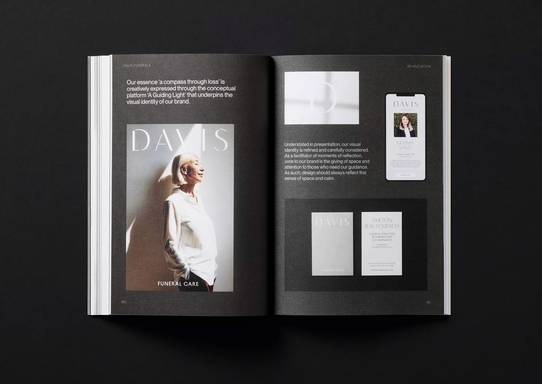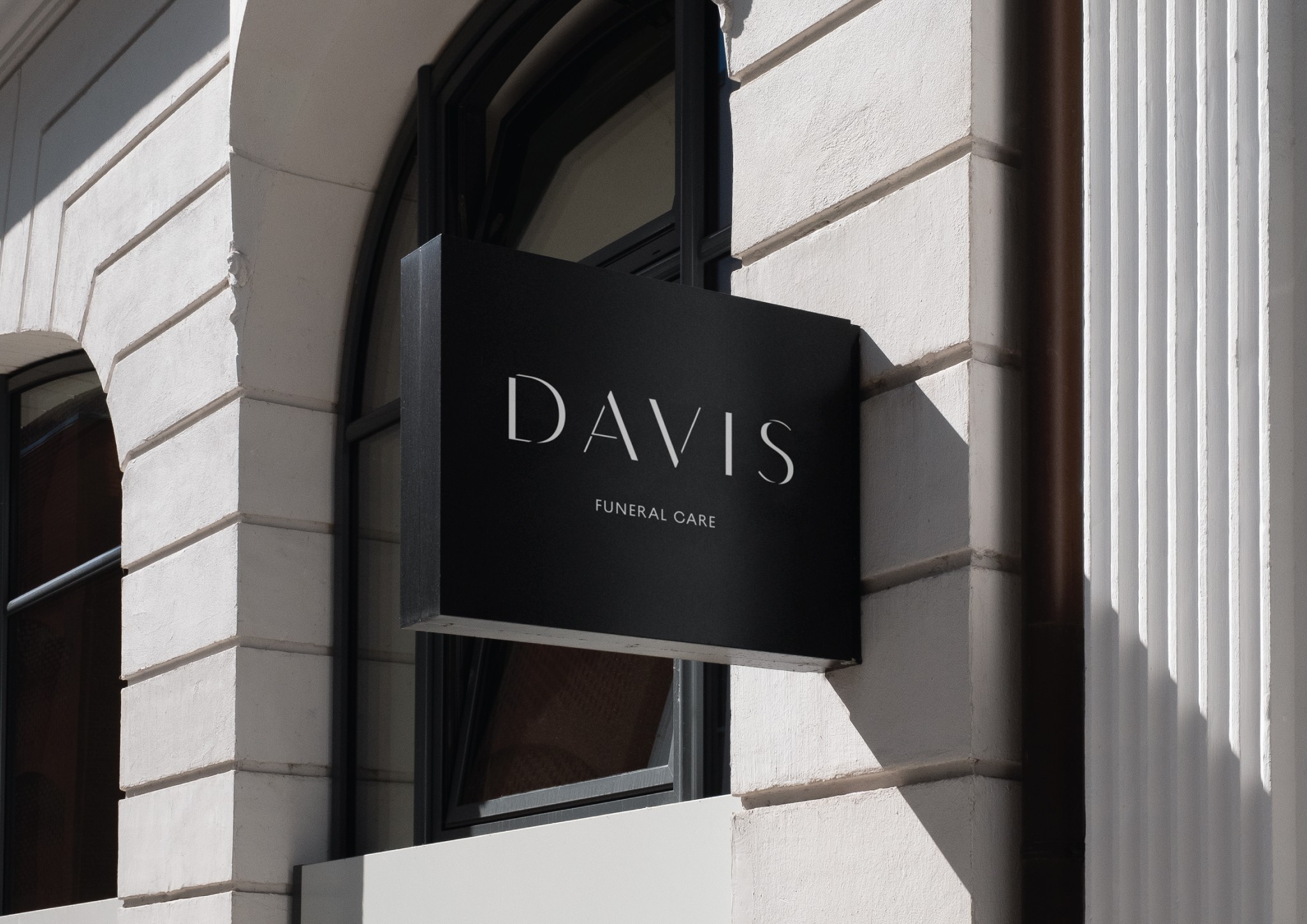 Leading their honourable profession since 1930, Davis Funerals play a vital role in society. The new identity signals their evolution to meet contemporary needs, speaking to their philosophy of service. Through the concept of ‘a guiding light’ the identity evokes space, calm, warmth and sophistication inherent in their offer.