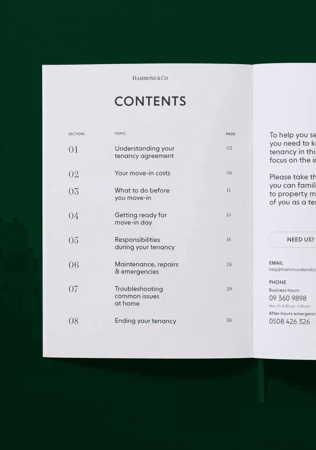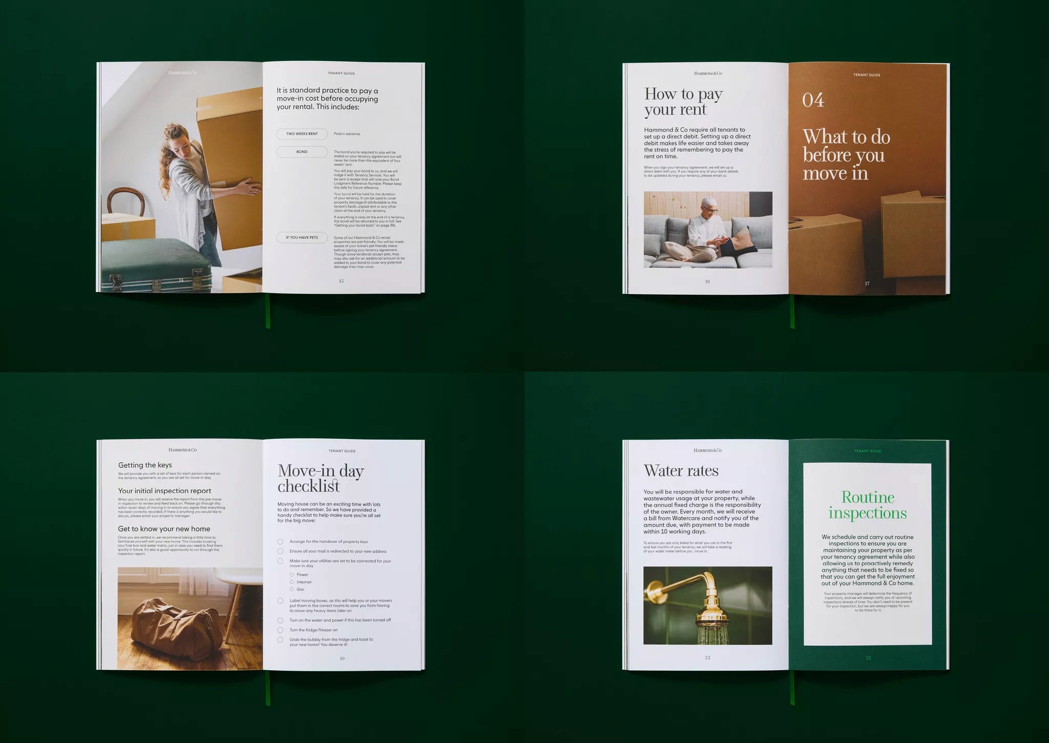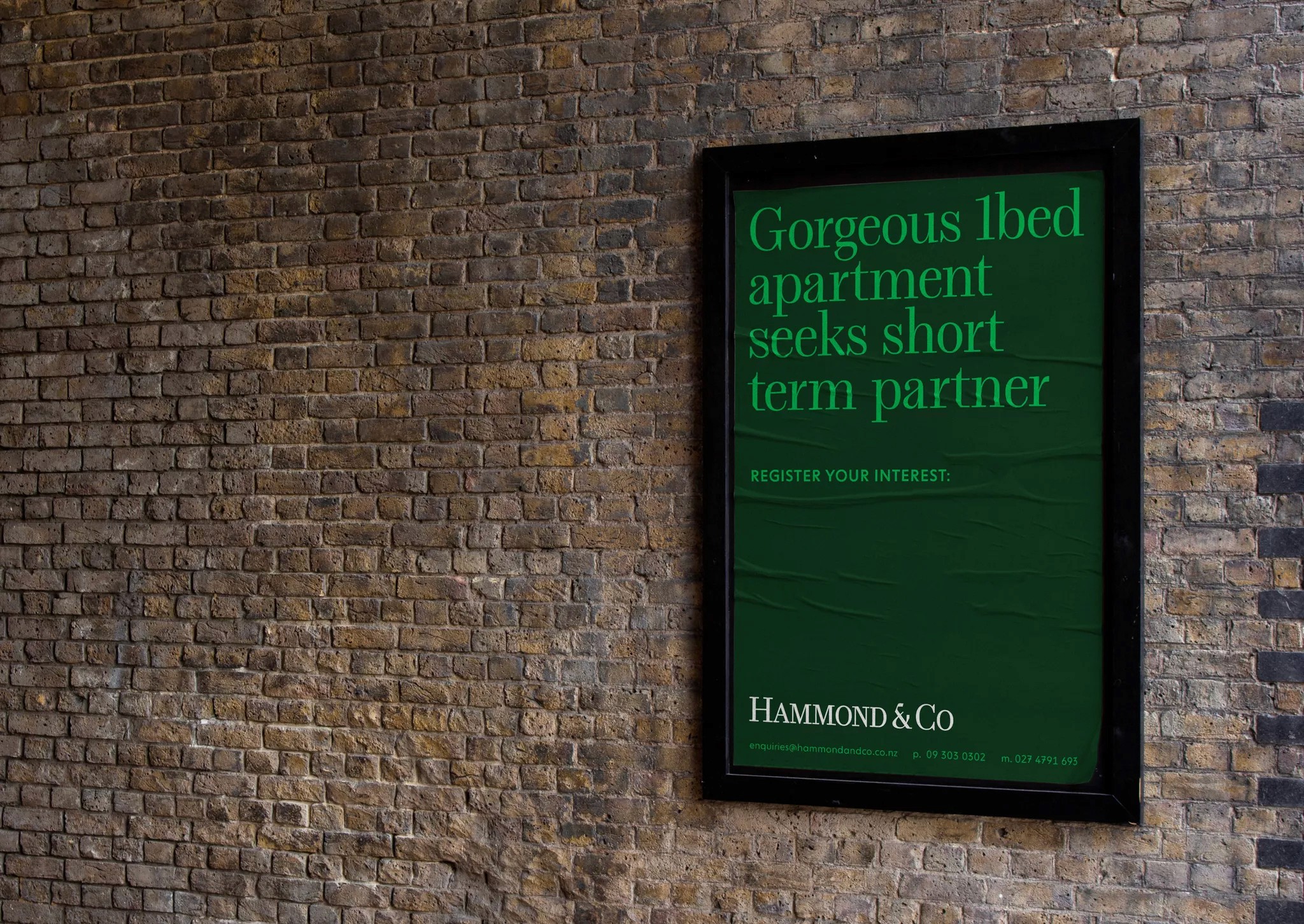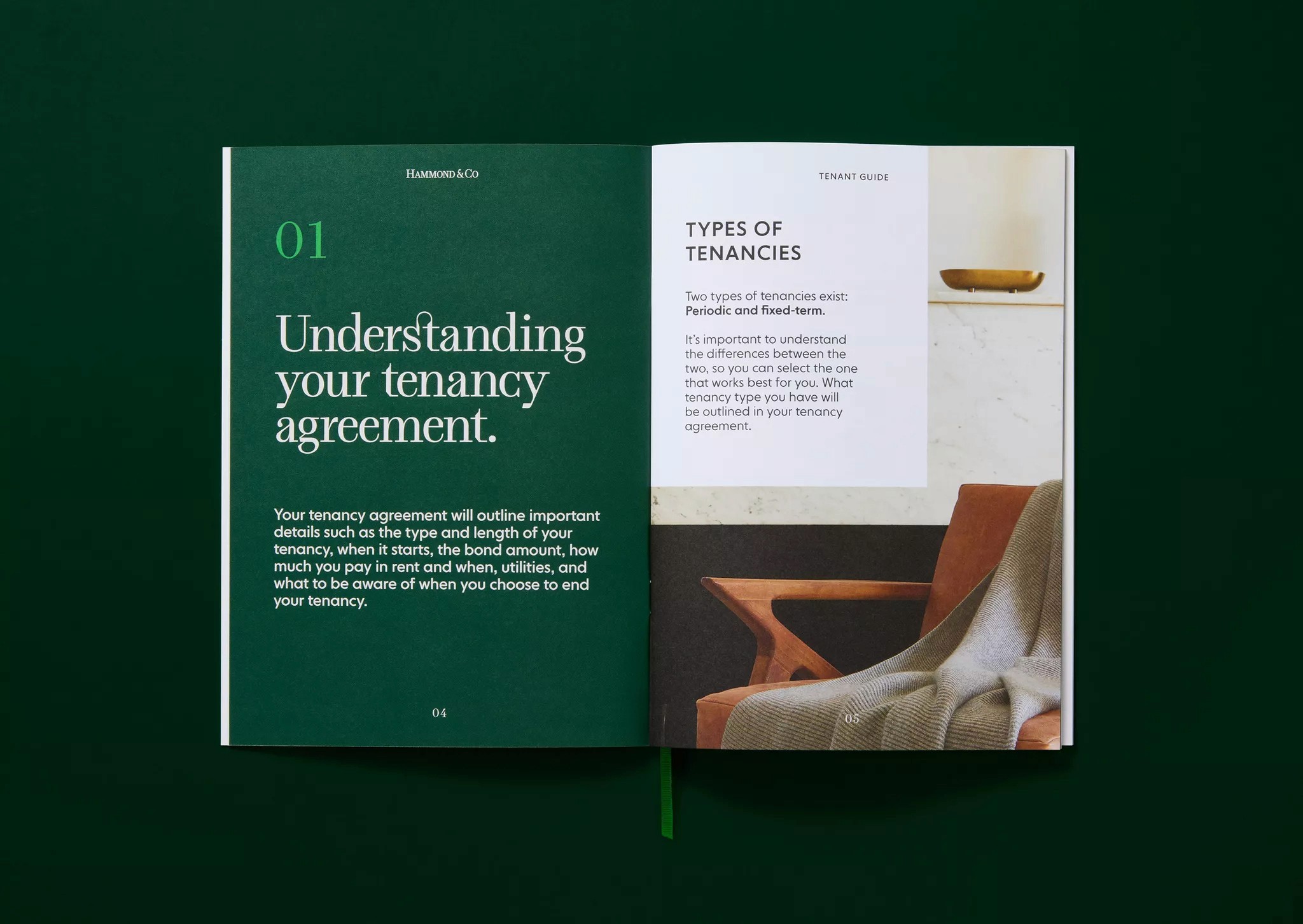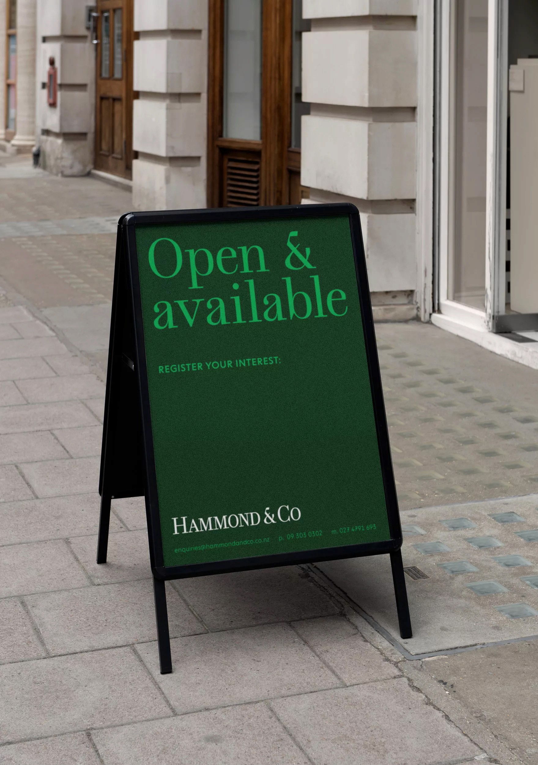 To reflect their level of expertise, experience and market niche they desired an identity that communicated their professionalism in a way that wasn’t expected within the category, avoiding retail real estate cheese. Traditional estate agent cues provide an established feeling within the Hammond & Co wordmark, this restraint and conservatism is juxtaposed by playful copy lines and a vibrant accent green. A wordmark the commands respect, customised letterforms are carefully crafted to create perfectly balanced smallcaps to counter the larger bookend caps. The stationery set uses premium uncoated stocks, contrasted with a tangible highbuild ink for the wordmark, reinforcing high quality brand cues.