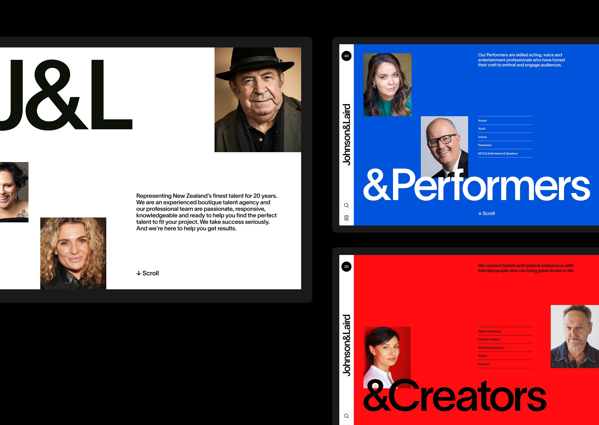 The OG talent agency. Hard charging, straight talking, big hearted professionals, dedicated to opening up New Zealand talent on the world stage. J&L’s dominance needed reaffirming – without losing their spirit, energy and character. And injecting a sense of irreverence and fun inherent in the industry.