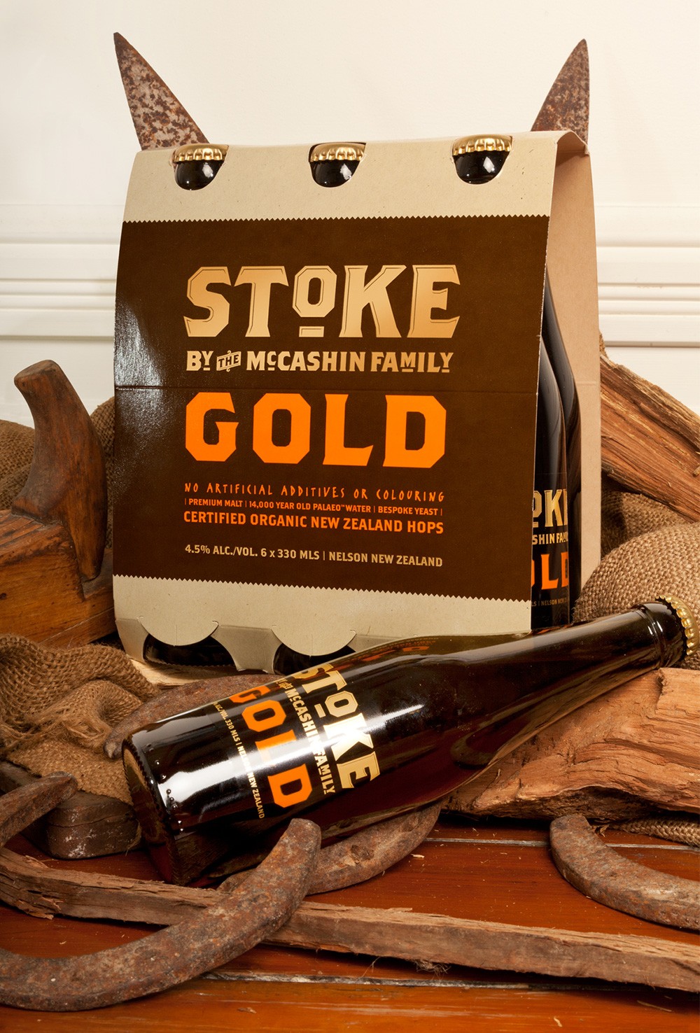 The McCashin family pioneered New Zealand’s craft beer revolution, building McCashin’s Brewery into an independent success with distinctive, high-quality brews. In 2009, a new generation took over, aiming to create a premium craft beer that could compete with mainstream “faux craft” offerings. The solution was Stoke, a brand rooted in the beer’s origins, with a strong typographic logo that is solid, blunt, and carries a retro charm. Stoke differentiates itself through authentic ingredients, genuine brewing history, and a commitment to quality. A simple colour palette identifies varietals, while gold foil details signal premium craftsmanship. The elegant yet masculine bottle reflects southern roots while appealing to discerning modern consumers. With its authentic story, honest production, and distinctive design, Stoke delivers a true craft beer experience, reconnecting consumers with the quality, character, and authenticity that first defined McCashin’s legacy.
